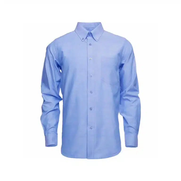 Camisa modelo de vestir, con cuello, pie de cuello y botón pisa cuello, manga larga con puño, una bolsa superior lado izquierdo, aletilla al frente con botones a la vista y doble pespunte, tablón externo en la espalda, bata trasera.